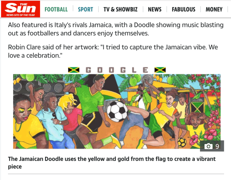 Google commissioned me to create the doodle for the Reggae Girlz Jamaica doodle for FIFA 2019